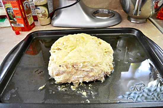 I decided to check out some of the recipes available on the Fleischmanns yeast baking website. I found this quick and easy Bacon, Herb & Cheese Bread recipe. It took no time at all to make. Not much different than mixing up a cake batter. All you need is one bowl to mix the dough, a small bowl to warm up the water and olive oil. And of course a baking pan to bake the bread in. The rising time was short and before I knew it my batch of cheese bread was in the oven baking.