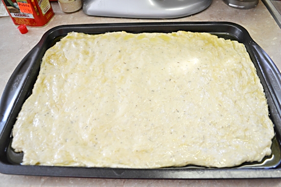 - Combine 1-½ cups flour, undissolved yeast, Italian herb seasoning, salt and garlic in a large mixer bowl.